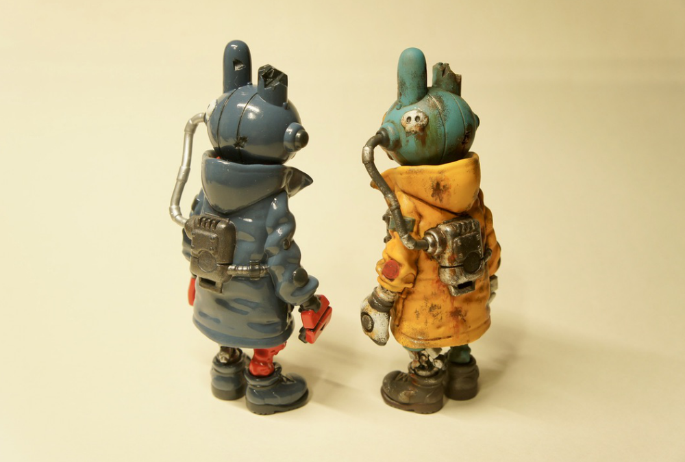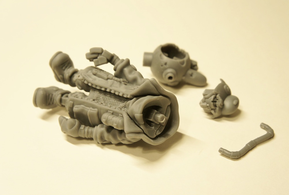 新作のガレージキットができました。近未来、SF、スチームパンク、サイボーグ、っぽさのあるかっこいい雰囲気を目指したけどやっぱりどこかポップさが出てますね。名前は今回も特に浮かばず退廃した文明崩壊後的な、この世の終わり感をこめて「エンドロール」としてみました。