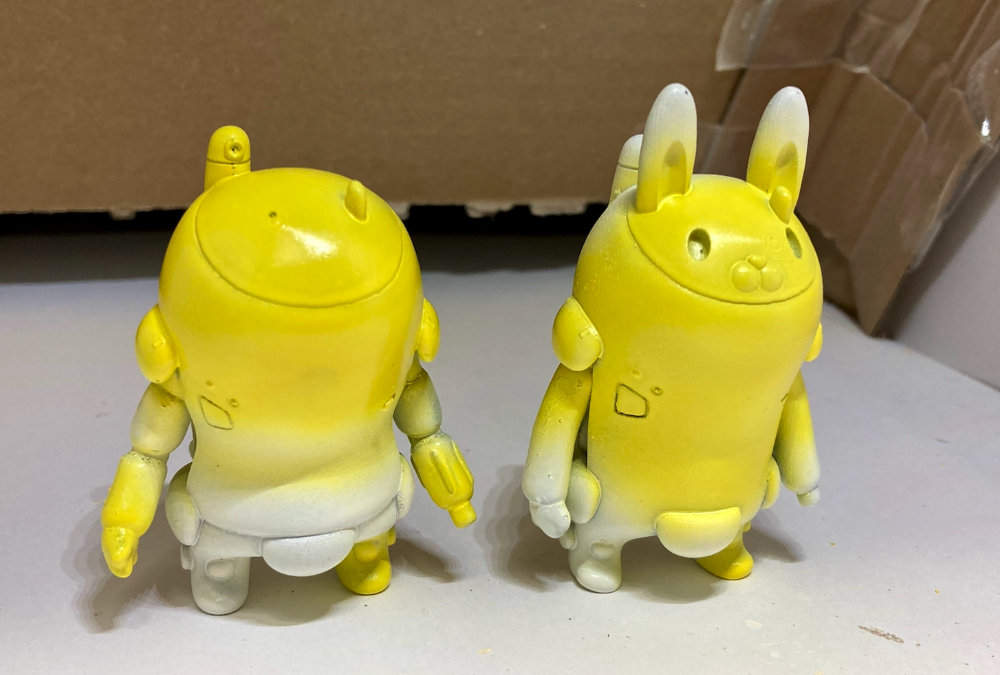 ↑下地をラッカーのウォームホワイトで。最後に汚し塗装しようと思ってるので、積層やサポート跡、気泡などなど何も処理せずえいやっと