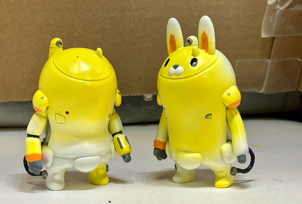 ↑メイン塗装その2。これもラッカーのキアライエローをエアブラシでグラデーションっぽくふわっと