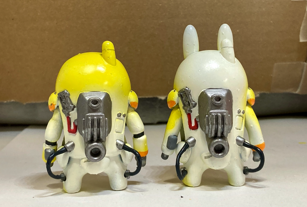 ↑続いて部分塗装。水性ホビーカラーやファレホで筆塗りです